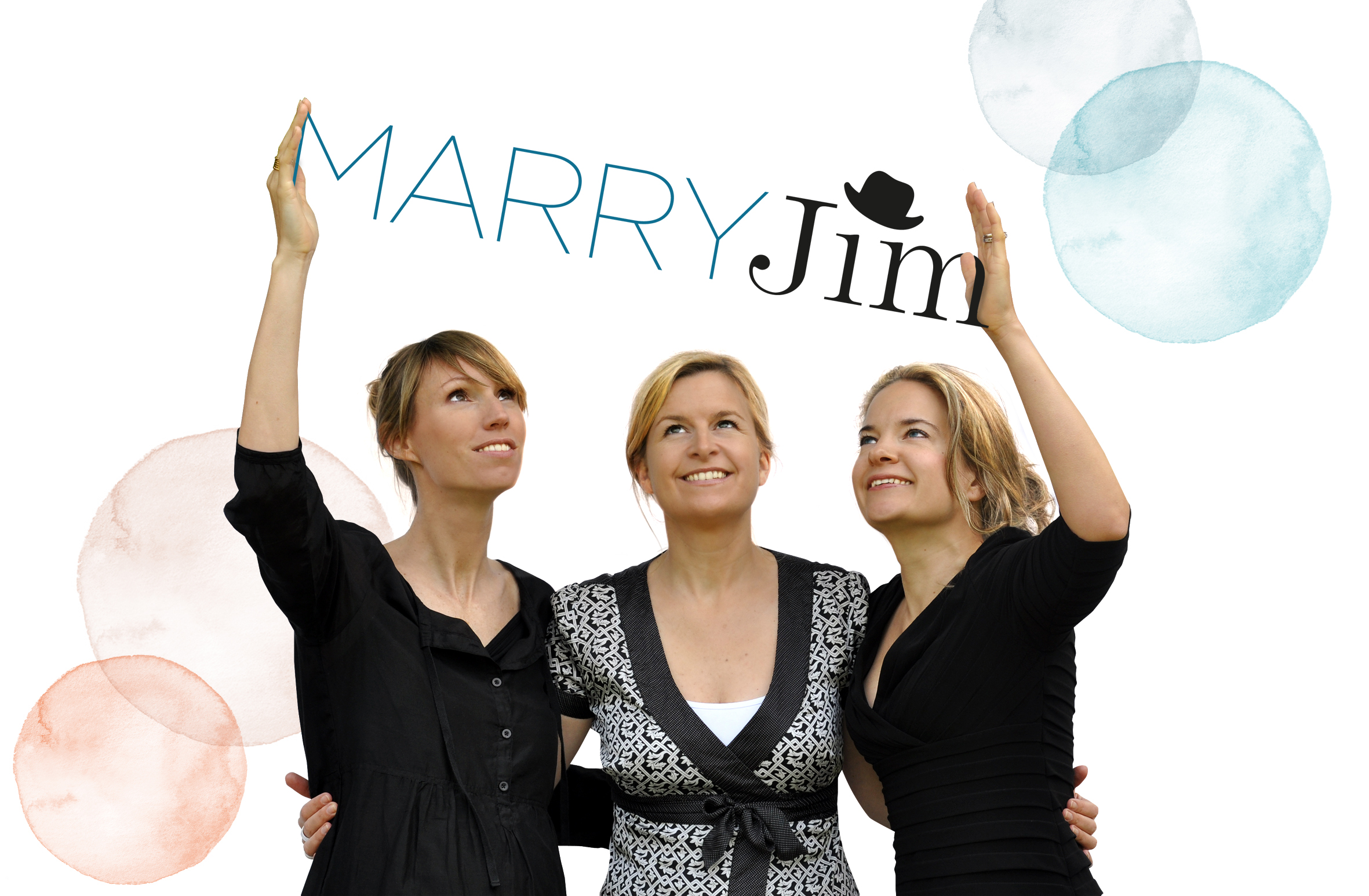 The teams behind MARRYJim were three women: Ulrike Adler Stevens, Andrea Gadesmann and Nina Dautzenberg. They met at a time when the designers Nina and Andrea were thinking hard about how to satisfy the demands of their friends for individual wedding initiations and Ulrike was having a problem finding a dress for her own wedding. After their second phone call the business idea was born. First MARRYJim.com was launched, followed by special chocolate wedding invitations Sent with love by MARRYJim.